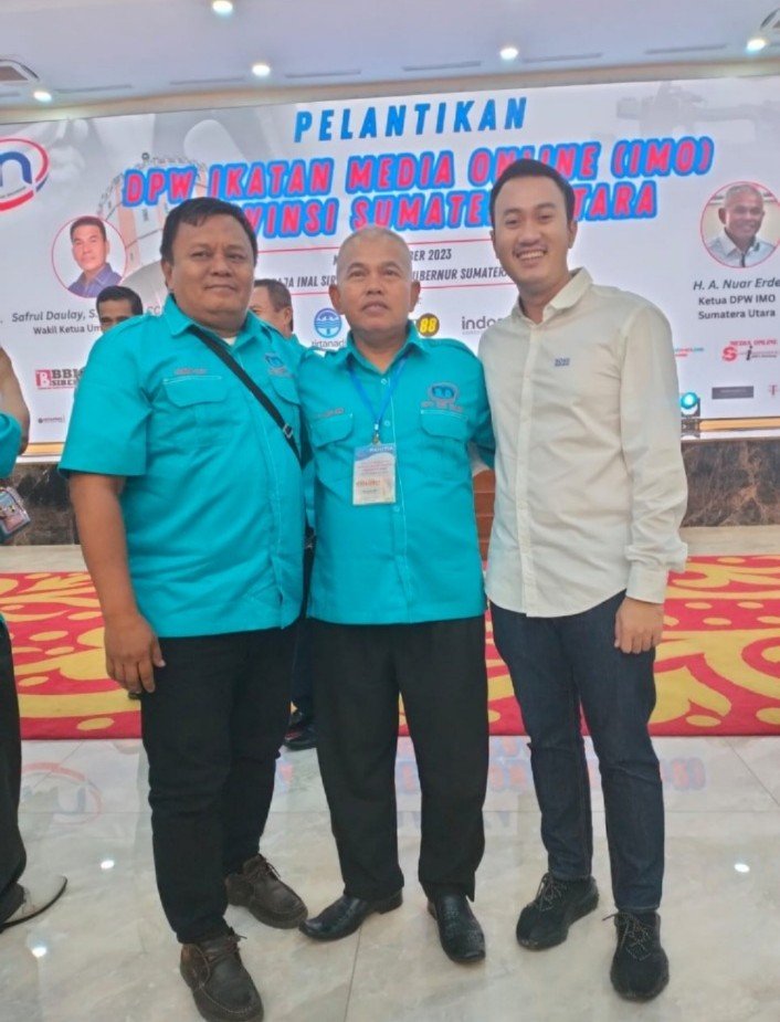 Pelantikan tersebut merupakan tindaklanjut atas terpilihnya HA Nuar Erde sebagai Ketua Ikatan Media Online Sumut secara aklamasi dalam Musyawarah Wilayah ke II yang digelar di Hotel Madani, Jalan Sisingamangaraja Medan, Rabu (30/8/2023) lalu.(AVID/r)