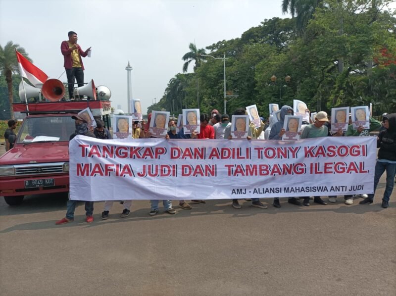 Ahmad KB selaku koordinator lapangan mengatakan dalam orasinya menyampaikan bahwa kegiatan yang digelar pada hari ini untuk mendesak kepada Presiden Jokowi segera memerintahkan Kapolri untuk menangkap dan mengadili Terduga Pelaku Mafia Judi “kita menggelar aksi hanya ingin meminta kepada Presiden Jokowi segera memerintahkan Kapolri untuk menangkap dan mengadili Tony Kasogi” Ujarnya