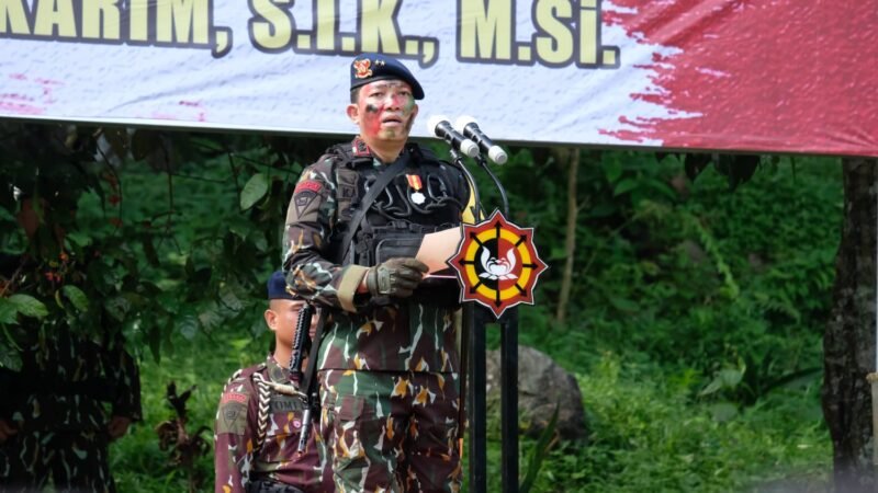 LensaPolri.com, Pandeglang – Setelah menerima Penganugerahan Warga Kehormatan Korps Brimob Polri, Kapolda Banten Irjen Pol Abdul Karim pimpin upacara Pembaretan Bintara Remaja Satbrimob Polda Banten angkatan 49 yang dilaksanakan di Bumi Perkemahan Cihunjuran Mandalawangi Pandeglang pada Selasa (12/12)