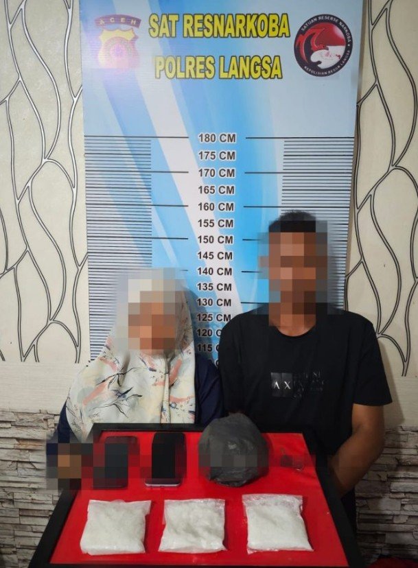 LensaPolri.com, Kota Langsa– Sat Resnarkoba Polres Langsa amankan Sabu seberat 305,60 (tiga ratus lima koma enam puluh) Gram dan dua Pelaku berinisial KD usia 32 tahun, pekerjaan Wiraswasta alamat. Gampung Alue Kumba Kecamatan Rantau Selamat Kabupaten Aceh Timur dan SK usia 40 tahun tahun, pekerjaan Ibu Rumah Tangga alamat Dusun Setia Gampung Bukit Selamat Kecamatan Sungai Raya Kabupaten Aceh Timur, pada hari Kamis (21/12/2023)
