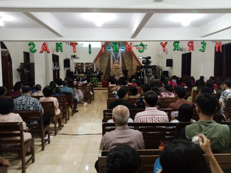 Pelaksananan Ibadah Umat Nasrani di Greja Injil Tanah Jawa (GKMl) Desa Pecangaan Kulon itu mengusung sebuah tema “Cinta Kasih Tuhan’ (Roma 5:8)”.