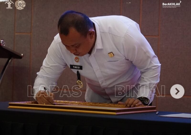 Kepala Lembaga Pemasyarakatan Kelas IIA Binjai, Theo Adrianus,A.Md.I.P.,S.M.H turut menghadiri Penandatanganan Komitmen Bersama Pelaksanaan Zona Integritas (ZI) yang diikuti oleh Pejabat Tinggi Pratama dan seluruh Kepala Satuan Kerja di Lingkungan Kantor Wilayah Kementerian Hukum dan HAM Sumatera Utara.