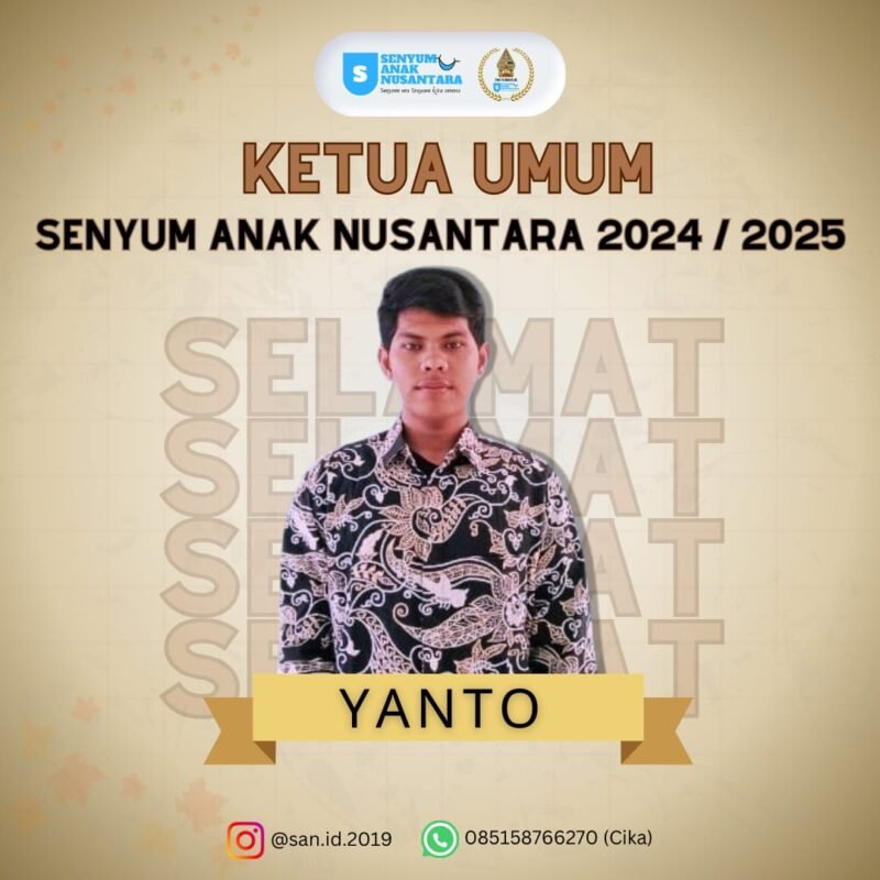 “Saya mengajak kepada Anak muda untuk bersama mengembalikan senyum anak di pelosok nusantara, juga mengajak pemerintah untuk dapat perduli terhadap pendidikan anak di Indonesia”. kata Yanto ketua SAN Terpilih.