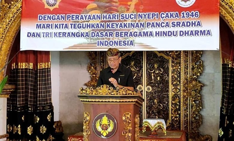 Dalam perayaan Nyepi tahun caka 1946, yang bertempat di Puri Den Bencingah Jl Raya Besakih No 16, Desa Akah Kec Klungkung, kab, Klungkung pada hari Sabtu , 16 Maret 2024 , ketua PHDI pusat Marsekal TNI ( purn) Ida Bagus Putu Dunia, sekaligus ketua pembina relawan Nak Bali tim pemenangan Prabowo -Gibran dalam pemilu 2024 yang lalu mengucapkan ,”