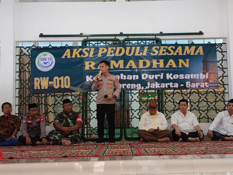 Dalam sambutannya, Kapolsek Cengkareng Polres Metro Jakarta Barat Kompol Hasoloan Situmorang, mewakili 3 Pilar Kecamatan Cengkareng, menyampaikan ucapan terima kasih kepada Ketua RW 010 Kelurahan Duri Kosambi, Bapak Tony Priyatna, dan jajarannya atas pelaksanaan kegiatan Aksi Peduli Sesama di Bulan Ramadhan.