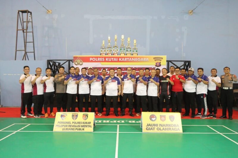 KUKAR – Polres Kukar menggelar Turnamen Bulu Tangkis bertema “Polri Presisi Untuk Negeri”, dalam rangka memperingati Hari Bhayangkara ke-78.