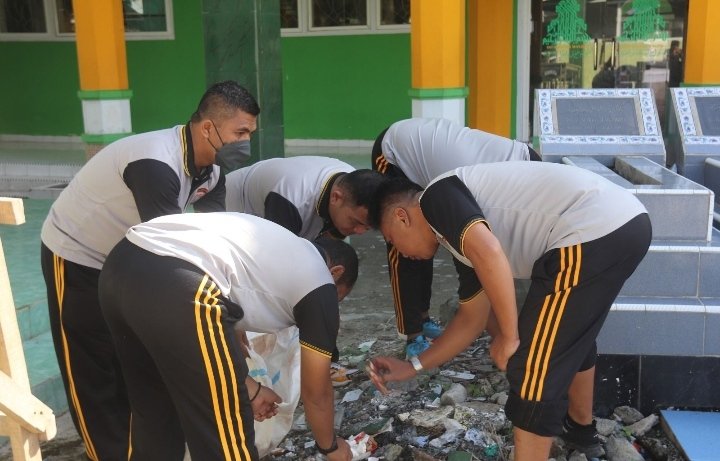 Adalah Masjid Agung Baiturrahim jalan Masjid Raya dan Masjid Jami jalan Wahid Hasyim Palu, aksi bersih-bersih kembali dilakukan personel dari Satker Ditreskrimsus Polda Sulteng.