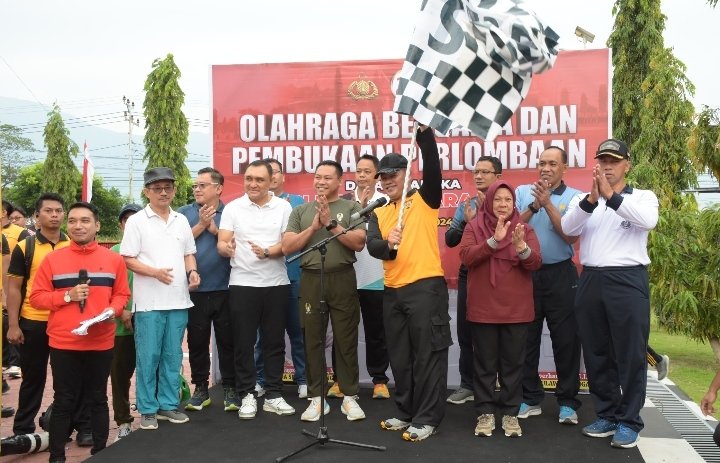 Setelah apel, kegiatan dilanjutkan dengan gerak jalan santai yang dimulai dari Lapangan Mapolda Sulteng, melalui rute halaman belakang kantor, dan kembali lagi ke titik awal. Suasana semakin semarak dengan senam aerobik yang dipandu oleh instruktur profesional, diikuti oleh semua peserta dengan penuh antusiasme.