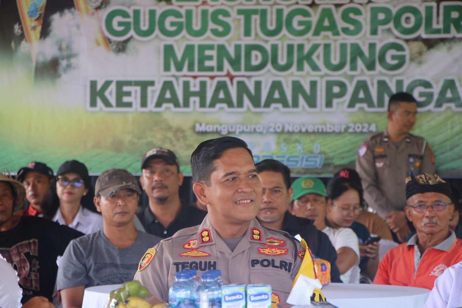 Mangupura – Kepala Kepolisian Resor Badung AKBP Teguh Priyo Wasono, SIK. pimpin Zoom Meeting Launching Gugus Tugas Polri Mendukung Ketahanan Pangan yang dilaksanakan di Lahan Ketahanan Pangan Br. Tohpati, Desa Bongkasa, Kecamatan Abiansemal, Kabupaten Badung, Rabu (20/11) pagi.