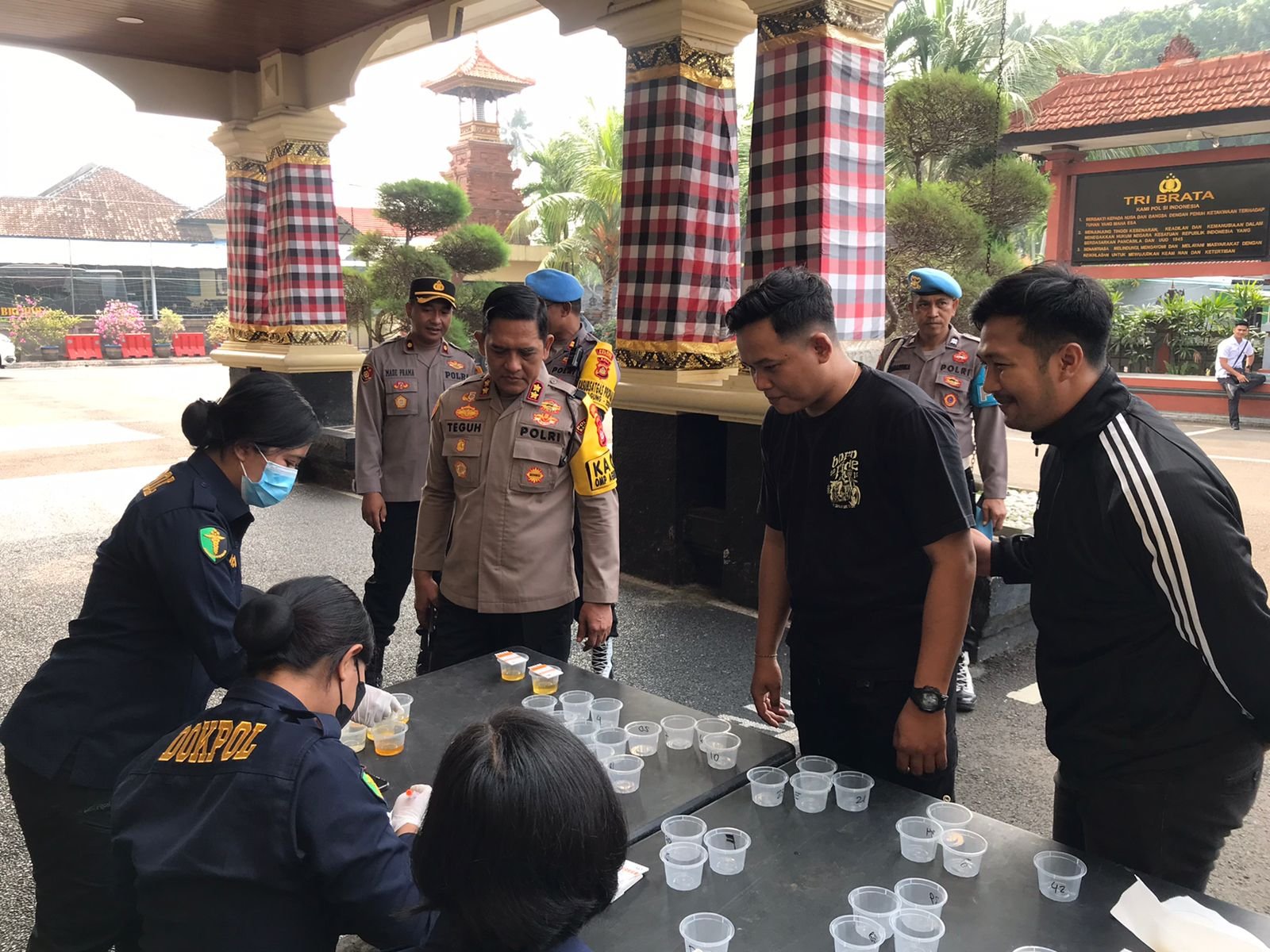 Mangupura – Sebanyak 26 orang anggota Polres Badung secara mendadak dicek urine usai mengikuti apel pagi di Mapolres Badung, Jalan Kebo Iwa Nomor 1, Mengwitani, Mengwi, Badung, pada Senin (25/11/24) pagi. Pengecekan urine ini untuk memastikan personel Polres Badung tidak menggunakan narkoba maupun obat terlarang lainnya dalam pelaksanaan tugas pengamanan TPS (Tempat Pemungutan Suara-red).