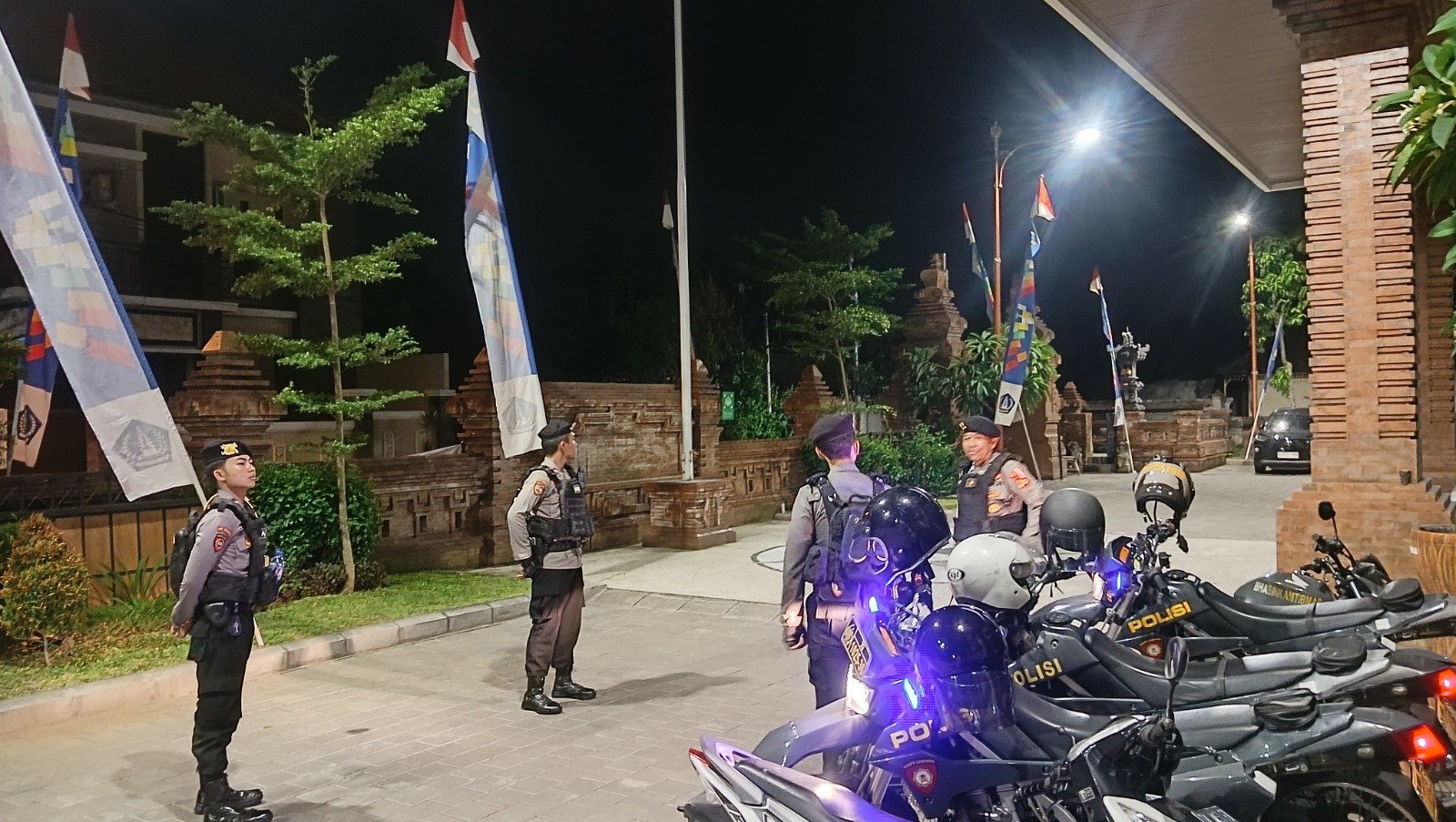 Mangupura – Tiga Personel Unit Raimas sat Samapta Polres Badung melaksanakan patroli Blue Light pasca pemungutan suara dalam pemilihan Kepala Daerah (Pilkada) serentak tahun 2024 di Kabupaten Badung. dengan sasaran kantor PPK (Panitia Pemungutan Kecamatan) Kuta Utara Kecamatan Kabupaten Badung, Rabu (27/11) malam pukul 23.000 Wita.