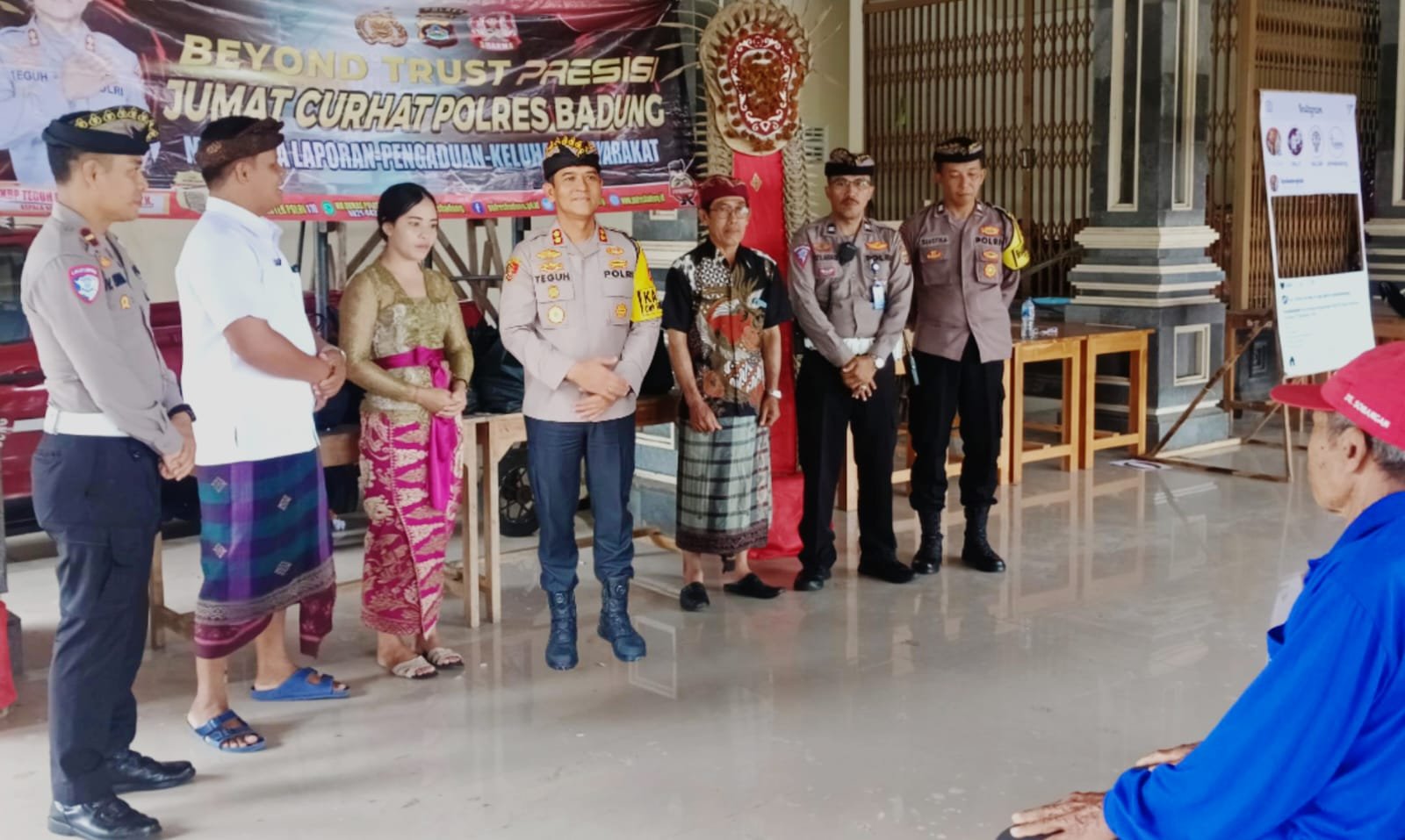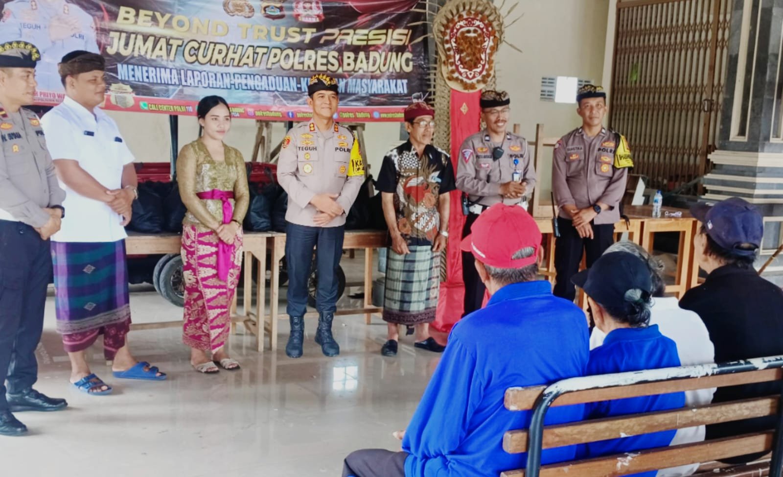 Momen Jum’at Curhat, Kapolres Badung Ajak Masyarakat Jaga Kamtibmas Pasca Pemungutan SuaraMangupura – Pasca proses pemungutan suara pada Pilkada serentak 2024 tanggal 27 Nopember 2024 lalu, Kepolisian Resor Badung terus berkomitmen menjaga situasi Keamanan dan Ketertiban Masyarakat (Kamtibmas) yang kondusif, salah satunya dengan menyambangi masyarakat melalui program Jum’at Curhat. Kepala Kepolisian Resor Badung AKBP Teguh Priyo Wasono, SIK., yang didampingi Kasat Lantas Polres Badung AKP I Wayan Sugianta, SH bersama anggotanya dan Bhabinkamtibmas Desa Sobangan hari ini kembali melaksanakan kegiatan Jum’at Curhat bersama masyarakat Banjar Dinas Dukuh Moncos Desa Sobangan, Mengwi, Badung, Jum’at (29/11/24) pagi.