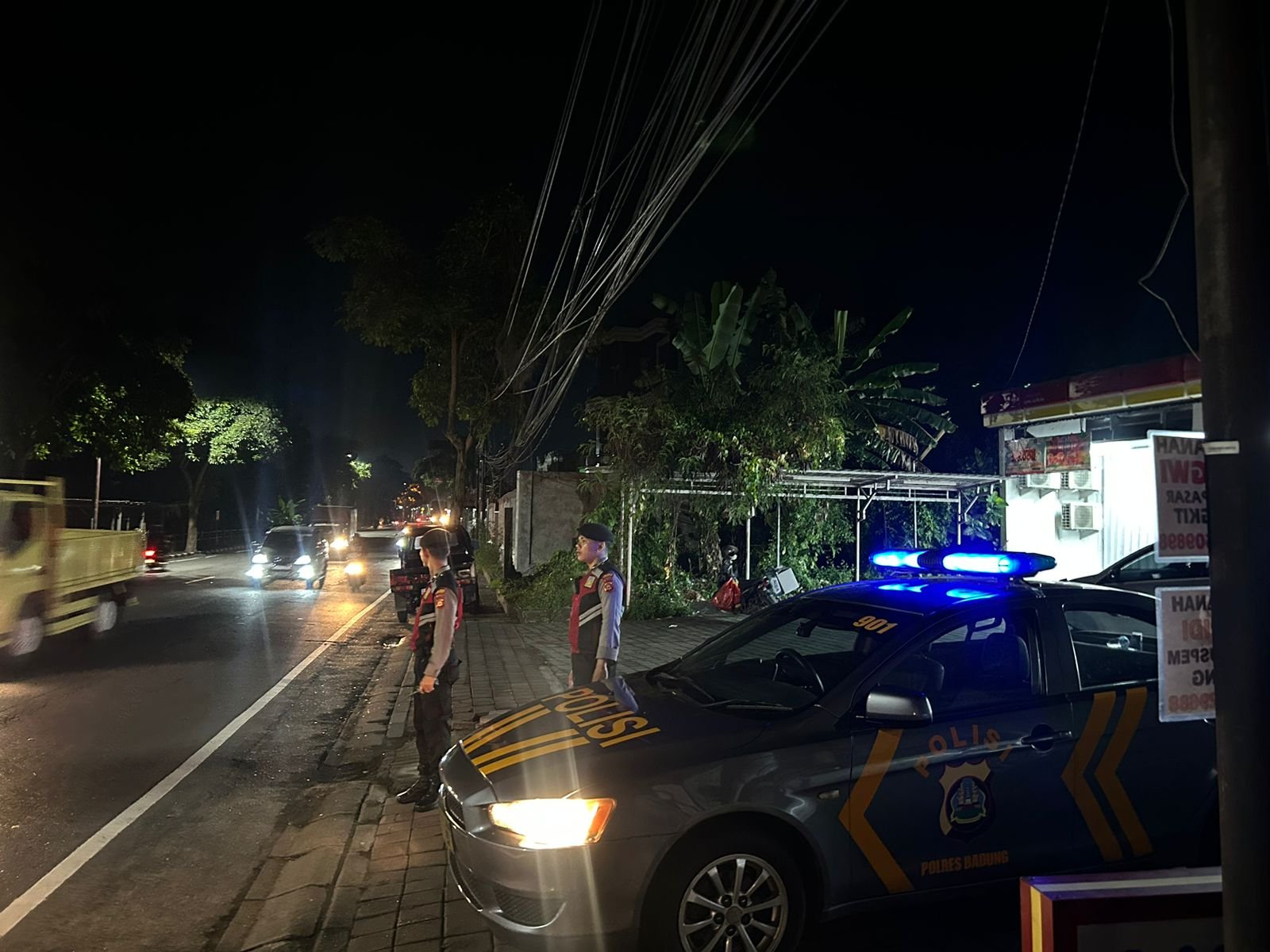 Mangupura – Untuk mencegah berbagai potensi kecelakaan lalu lintas dan tindak kejahatan serta menciptakan rasa aman bagi warga masyarakat, Satuan Samapta Polres Badung melalui Unit Patroli melakukan kegiatan patroli dengan menyusuri jalur seputaran wilayah Kecamatan Mengwi serta menyambangi tempat-tempat keramaian perbelanjaan, pasar, ATM serta jalur rawan lainnya yang ada di sepanjang jalur utama Denpsar – Gilimanuk Kelurahan Lukluk Kecamatan Mengwi Kabupaten Badung, Senin (02/12) ini hari pukul 02.00 Wita.