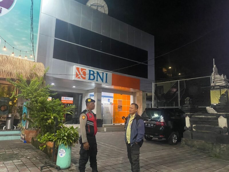 Tampak Personil Unit Samapta menyambangi Kantor Perbankan dan ATM BRI dan BNI di jalan raya Canggu menyampaikan pesan kamtibmas kepada petugas Satpam dan masyarakat sekitar area ATM agar lebih waspada dan berhati-hati dalam suasana apapun serta mengingatkan saat memarkir kendaraan di pastikan dalam keadaan aman.