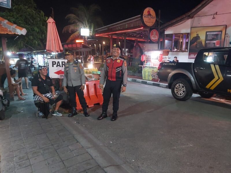 Polsek Kuta Utara Blue Light Patrol Amankan Aktifitas Pengunjung Di Kawasan Wisata