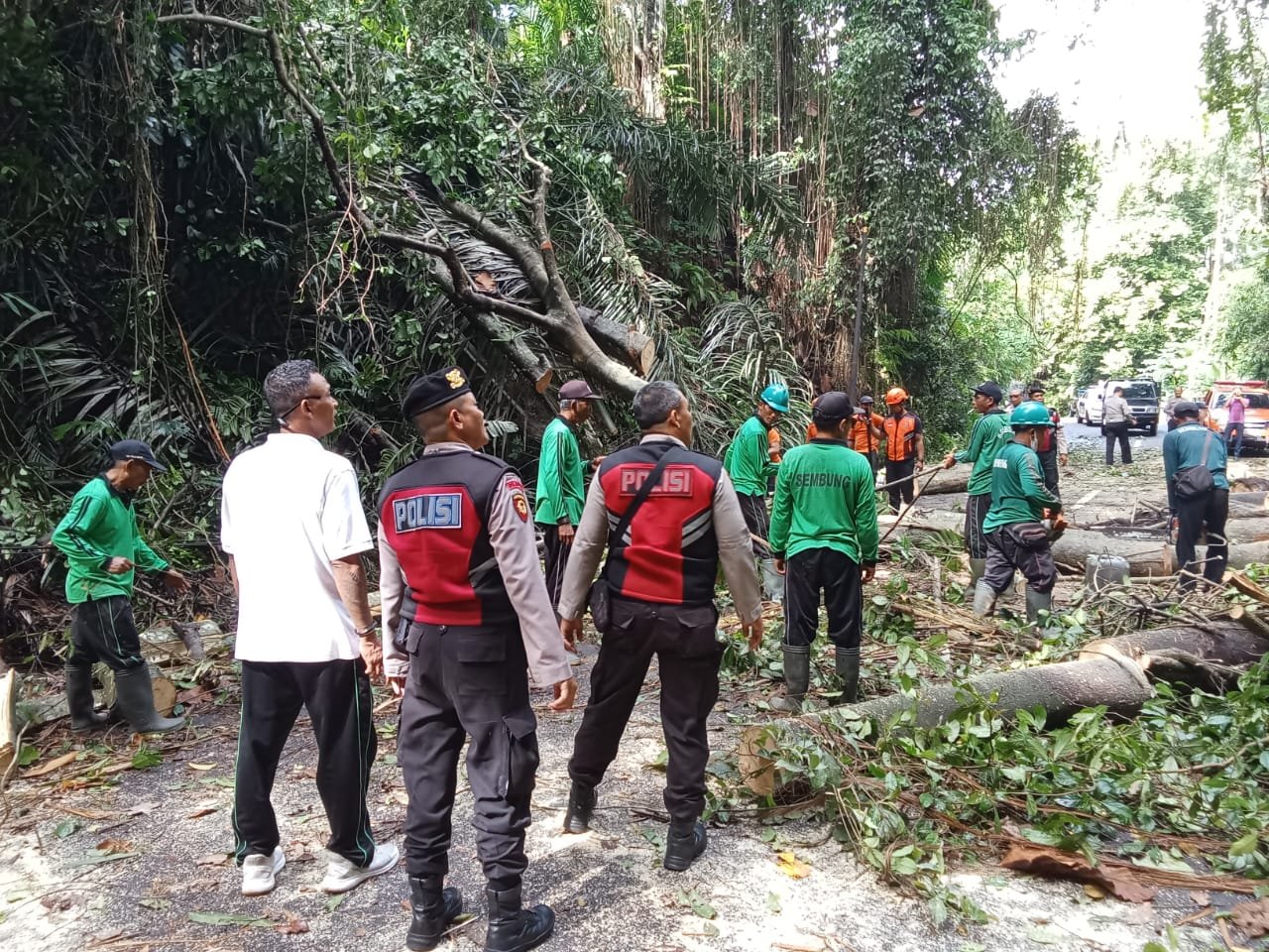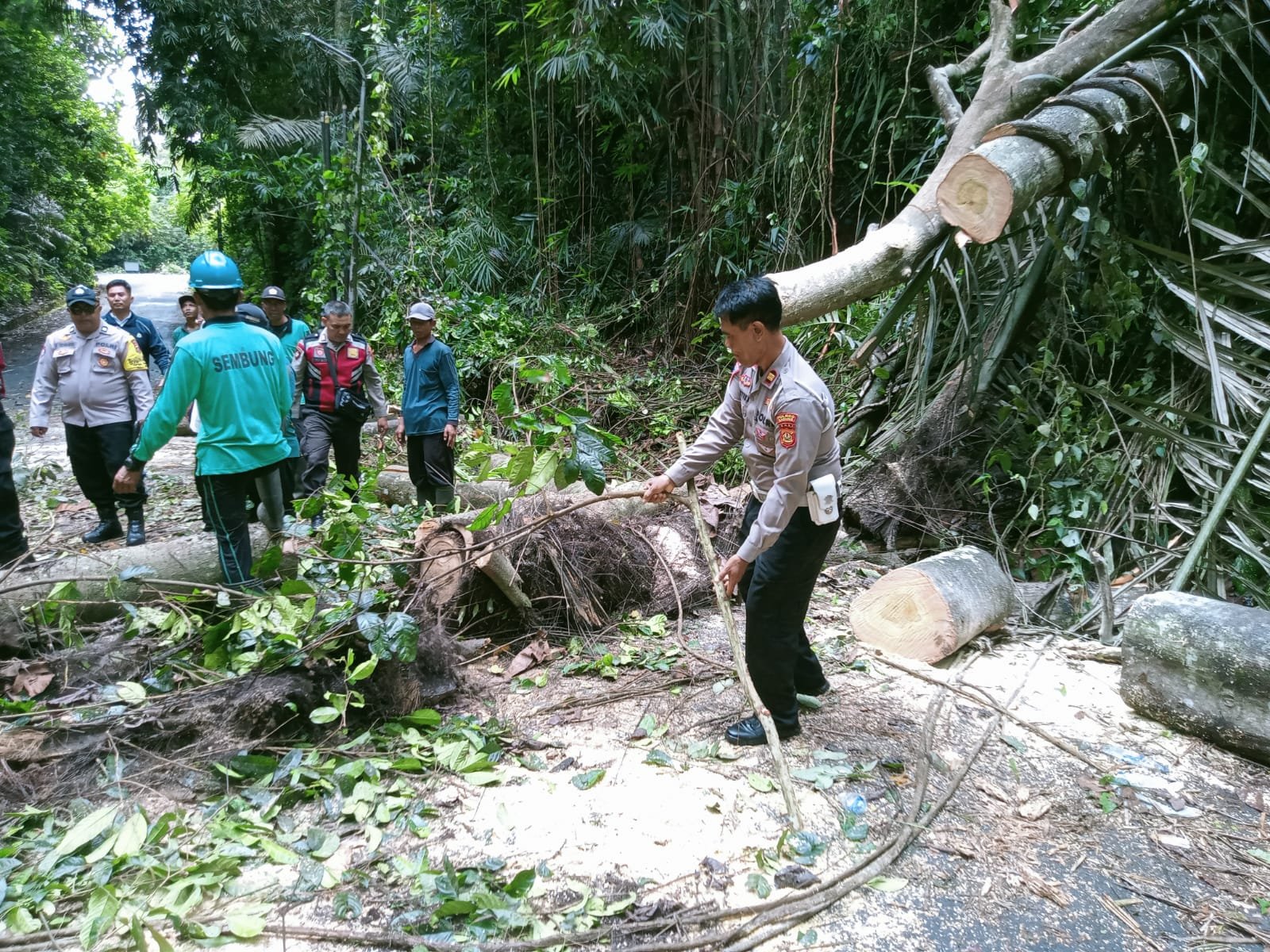 Kanit Lantas Polsek Mengwi Iptu I Nyoman Mustika mengatakan ada 4 (empat) pohon tumbang yang menutupi akses jalan di Desa Sembung