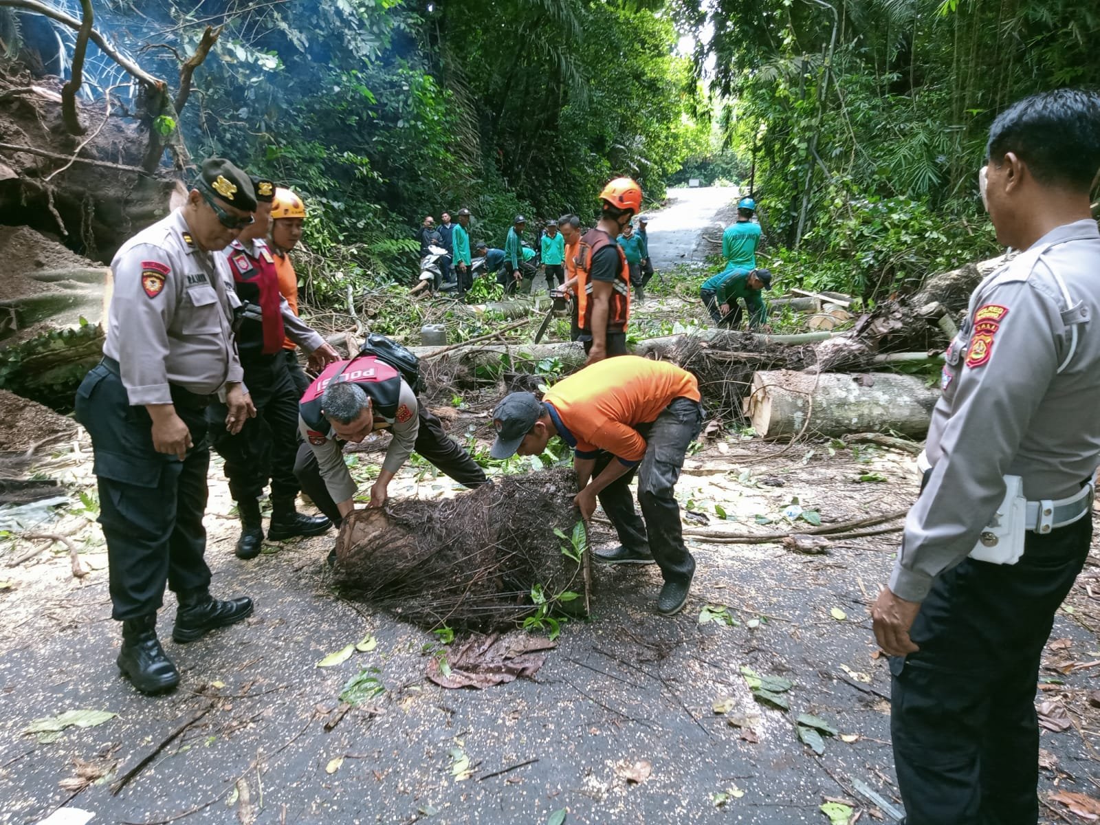 “Kita lakukan evakuasi dan pembersihan jalan sehingga akses jalan dapat dipergunakan lagi oleh masyarakat”, ucapnya