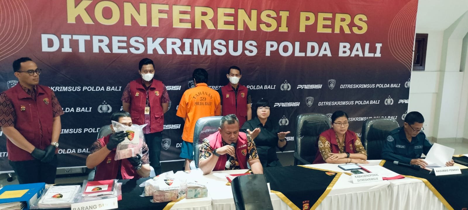 Konrensi Pers didepan para awak media pada selasa 27/12/2024 di loby Ditreskrimsus Polda Bali, Kasubdit Tipidkor Ditreskrimsus AKBP M. Arif Batubara, S.H., S.I.K., M.H., M.Tr., Opsla., didampingi Kabagbinopsnal AKBP Ns. Ni Nyoman Yuniartini, S.Kep. dan Kanit 2 AKP Si Gede Nyoman Pariasa, S.H., serta Kasubbid Penmas Bidhumas AKBP Ketut Ekajaya, S.Sos., M.H. menyampaikan keberhasilannya dalam mengungkap kasus korupsi dana Hibah KONI Gianyar TA 2019.
