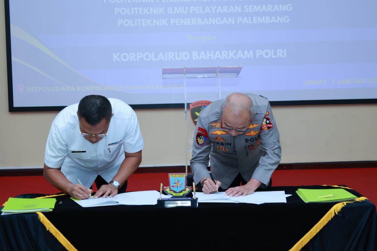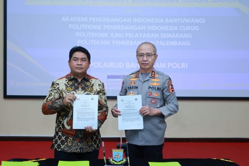 Jakarta – Korps Kepolisian Perairan dan Udara (Korpolairud) terus berkomitmen meningkatkan kompetensi personelnya melalui kerja sama strategis dengan berbagai institusi pendidikan. Pada Jumat (3/1/2025), Korpolairud menandatangani nota kesepahaman dengan Akademi Penerbangan Indonesia Banyuwangi, Politeknik Penerbangan Curug, Politeknik Ilmu Pelayaran Semarang, dan Politeknik Penerbangan Palembang di Mako Ditpoludara Korpolairud, Pondok Cabe.