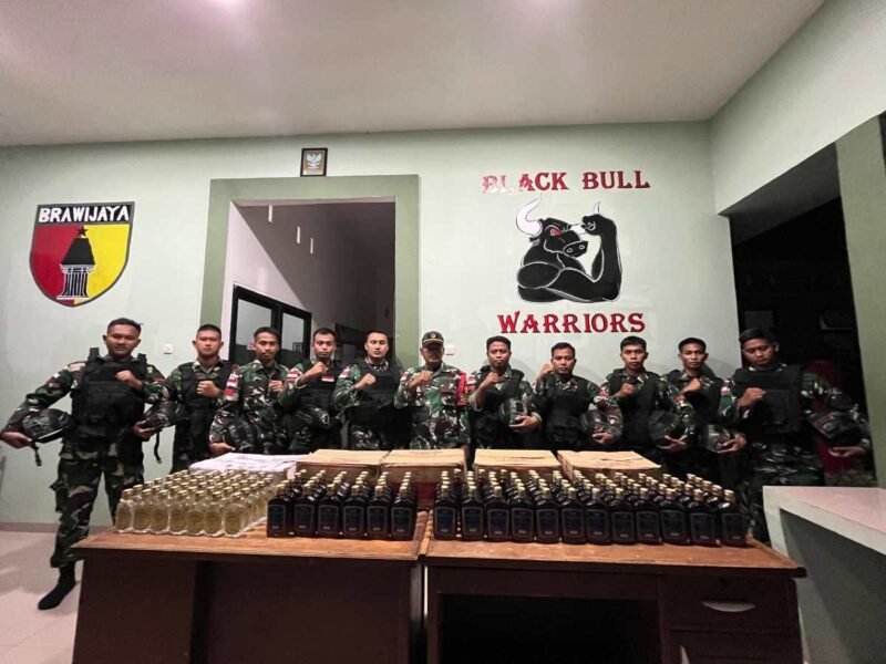 Satgas Pamtas RI-Malaysia Yonzipur 5/ABW, jajaran SSK III berhasil menggagalkan penyelundupan minuman keras ilegal merek berjumlah 5 dus, jenis Lemon din 1 dus dan Brandy 4 dus di Desa SEI Kelik, Kecamatan Ketungau hulu, Kabupaten Sintang, Selasa (7/1/2025).