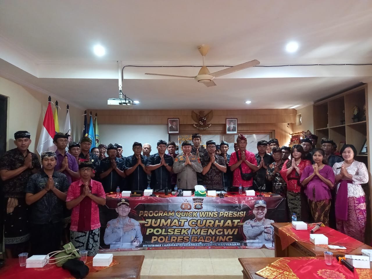 MENGWI – Kepala Kepolisian Sektor Mengwi Kompol I Ketut Adnyana T.J S.Sos.,S.H.,M.M., melaksanakan kegiatan Jumat Curhat di aula Kantor Desa Sembung, Kecamatan Mengwi, Kabupaten Badung, Bali. Jumat (10/1/2025) pukul 09.00 wita