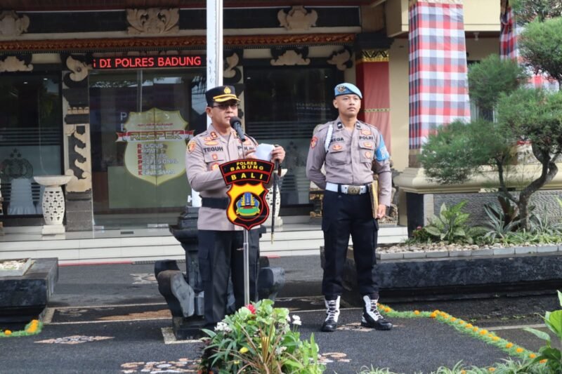 Mangupura – Kapolres Badung, AKBP Teguh Priyo Wasono, SIK., menyampaikan arahan dari Irwasum Polri, agar setiap personel lebih meningkatkan kinerja dan profesionalisme jajaran kepolisian khususnya Polres Badung dalam memberikan pelayanan terbaik kepada masyarakat, hal tersebut disampaikan saat memimpin apel rutin Jam Pimpinan yang diadakan di halaman Mapolres Badung Jl. Kebo Iwa Mengwitani, Kecamatan Mengwi Kabupaten Badung, Bali, pada pagi hari ini, Senin (13/1/25).