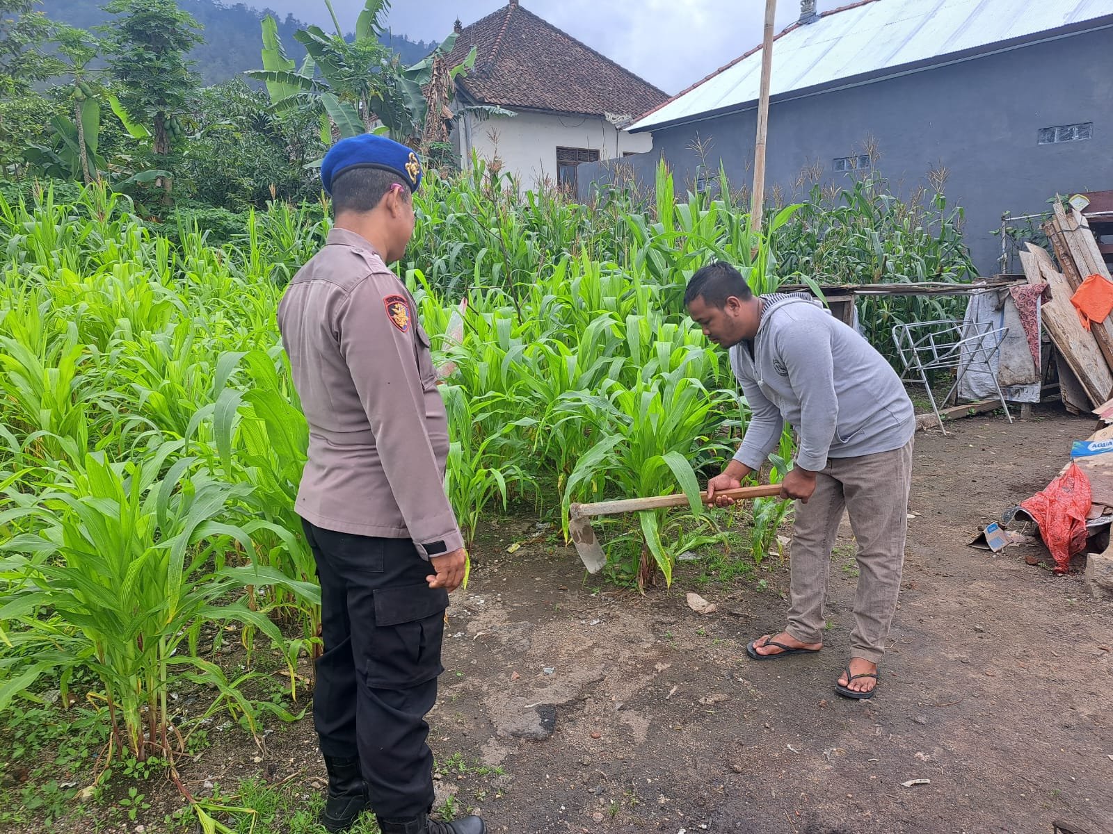 Dalam rangka mendukung Ketahanan pangan nasional serta meningkatkan kesejahteraan masyarakat melalui pemanfaatan lahan pekarangan, personil Sat Polairud Polres Bangli yang dikendalikan oleh _*Aiptu Luis Resiona*_ bersama _*Bripka Pande Pt. Suarsana*_ dan _*Bripka Ketut Darpa*_ melaksanakan monitoring kegiatan pemanfaatan lahan pekarangan warga atas nama *Bapak Ketut Purna* denagn luas lahan 2 are, alamat Desa Kedisan – Kec. Kintamani ( https://maps.app.goo.gl/K2oeML3wws6XTTEv8 )