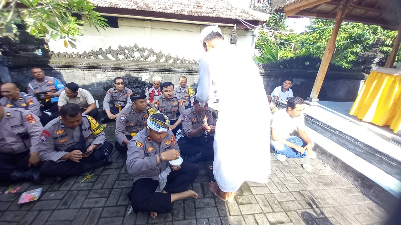 “Perlu adanya keseimbangan antara kebutuhan jasmani dan rohani sehingga dengan begitu personil Polri khususnya Polsek Mengwi dapat melaksanakan tugas dan tanggungjawabnya dengan baik serta selalu berada dijalan yang benar”, terang Kompol Adnyana T.J didampingi pemangku Pura Giri Catur Loka