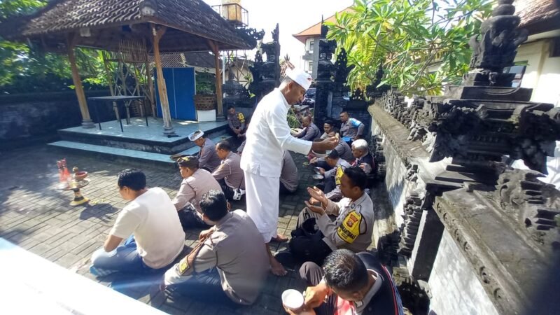 MENGWI – Kapolsek Mengwi Kompol I Ketut Adnyana T.J S.Sos.,S.H.,M.M., bersama anggota yang beragama Hindu melaksanakan kegiatan persembahyangan bersama di Pura Giri Catur Loka Polsek Mengwi, Banjar Denkayu Delodan, Desa Werdi Bhuwana, Kecamatan Mengwi, Kabupaten Badung, Bali. Selasa (14/1/2025) pukul 08.30 wita