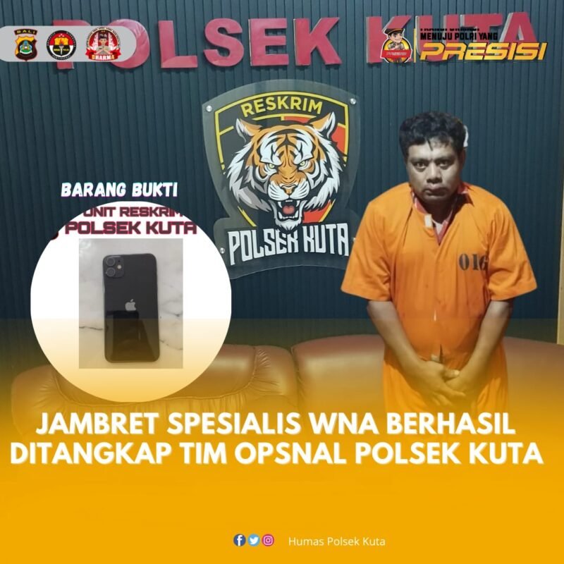 Dalam pemeriksaan, pria asal Jember, Jawa Timur ini mengaku handphone tersebut merupakan hasil menjambret di Seminyak, Kuta.