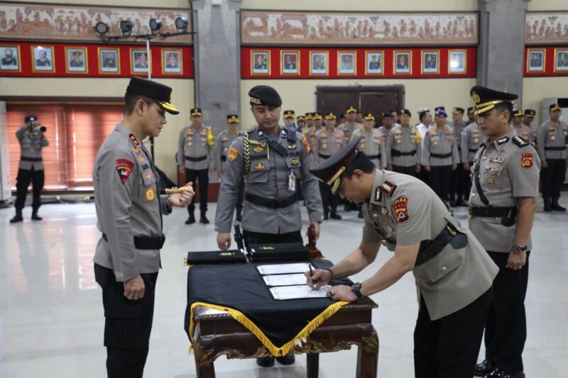 Lensapolri.com – Kepala Kepolisian Daerah Bali, Irjen. Pol. Daniel Adityajaya, S.H., S.I.K., M.Si. bertindak sebagai inspektur dalam Upacara Serah Terima Jabatan (Sertijab) Pejabat Utama Polda Bali dan Kapolres Jajaran yang bertempat di Gedung Presisi Polda Bali, Rabu (15/12/2023).