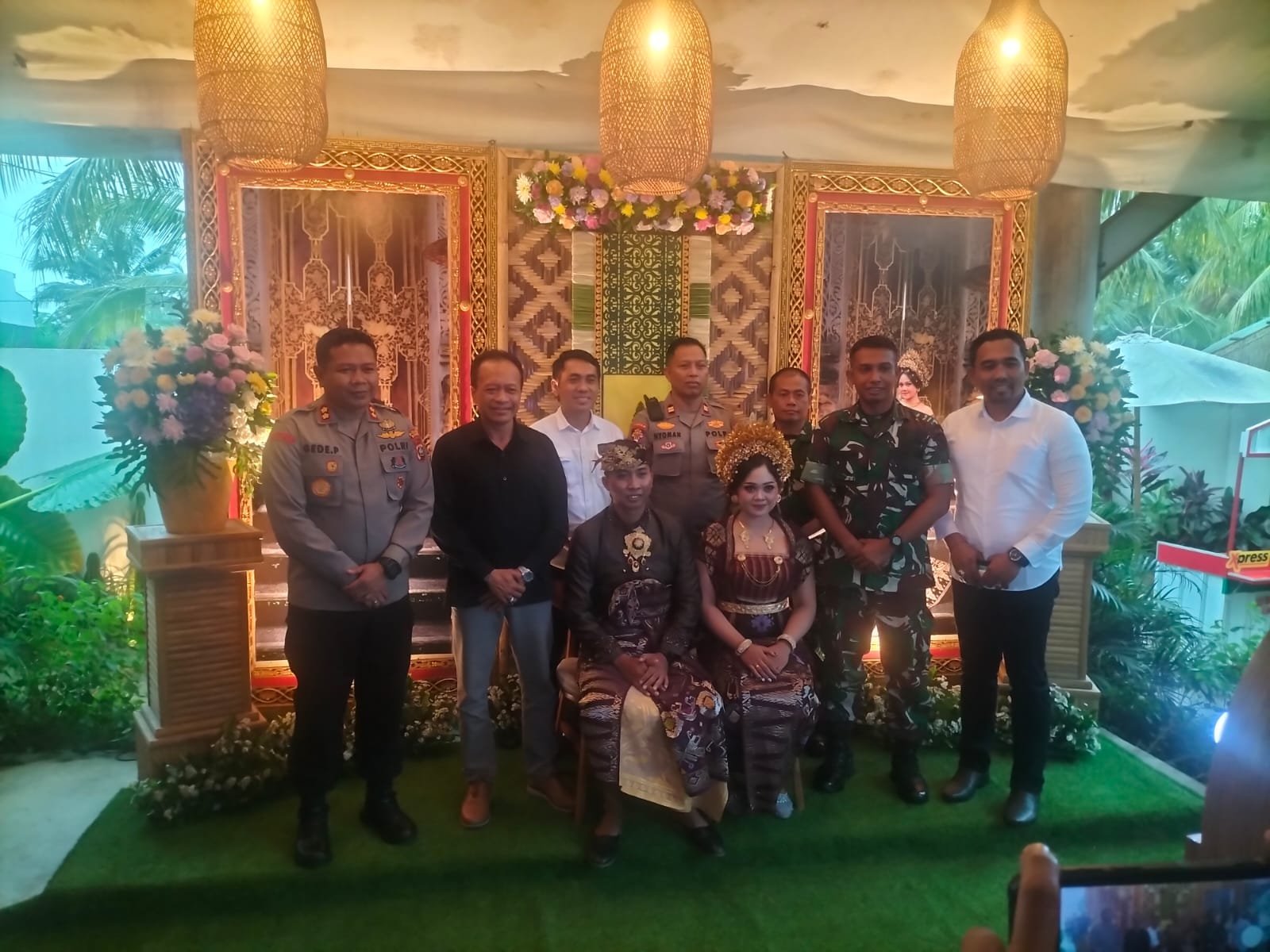 Kapolres Bangli AKBP I Gede Putra, SH., S.I.K., MH didampingi Dandim 1626 Bangli Letkol Kav I Ketut Artha Negara, SH., M.I.P, Kasat Reskrim, Kasat Intelkam dan Kasi Propam Polres serta Danramil Bangli Kapten CPL I Wayan Widana dan Dan Unit Intel Kodim 1626 Bangli Lettu Inf I Nyoman Rinum menghadiri Acara Resepsi pernikahan Anggota yang bertugas di Staf Bag Ops Polres Bangli bertempat di Uma Kelurahan Bebalang Bangli, Senin (20/1/25)