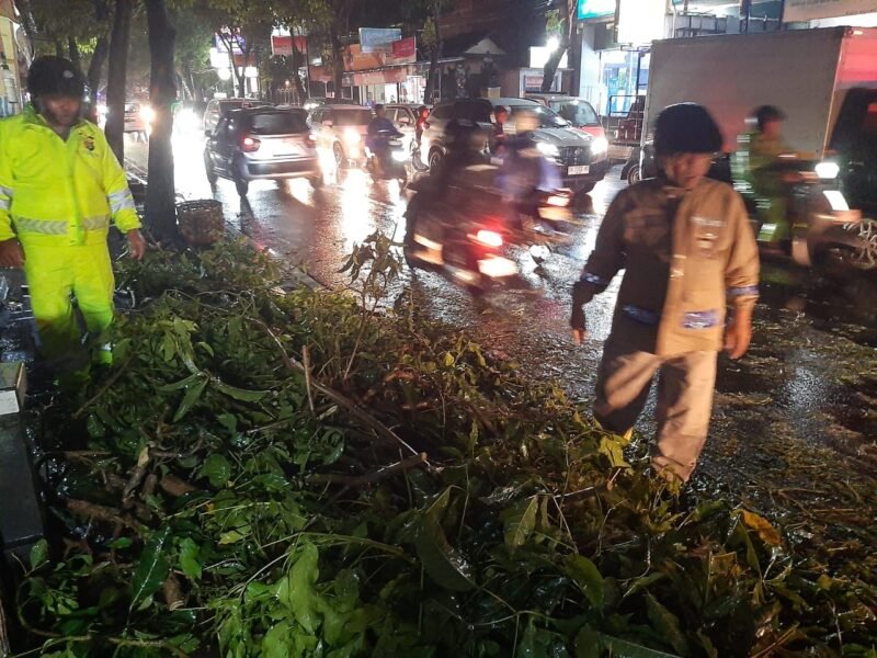 Adapun pohon yang tumbang yakni pohon perindang jalan berjenis tabubuya setinggi 20 meter yang disebabkan karena diguyur hujan lebat disertai angin