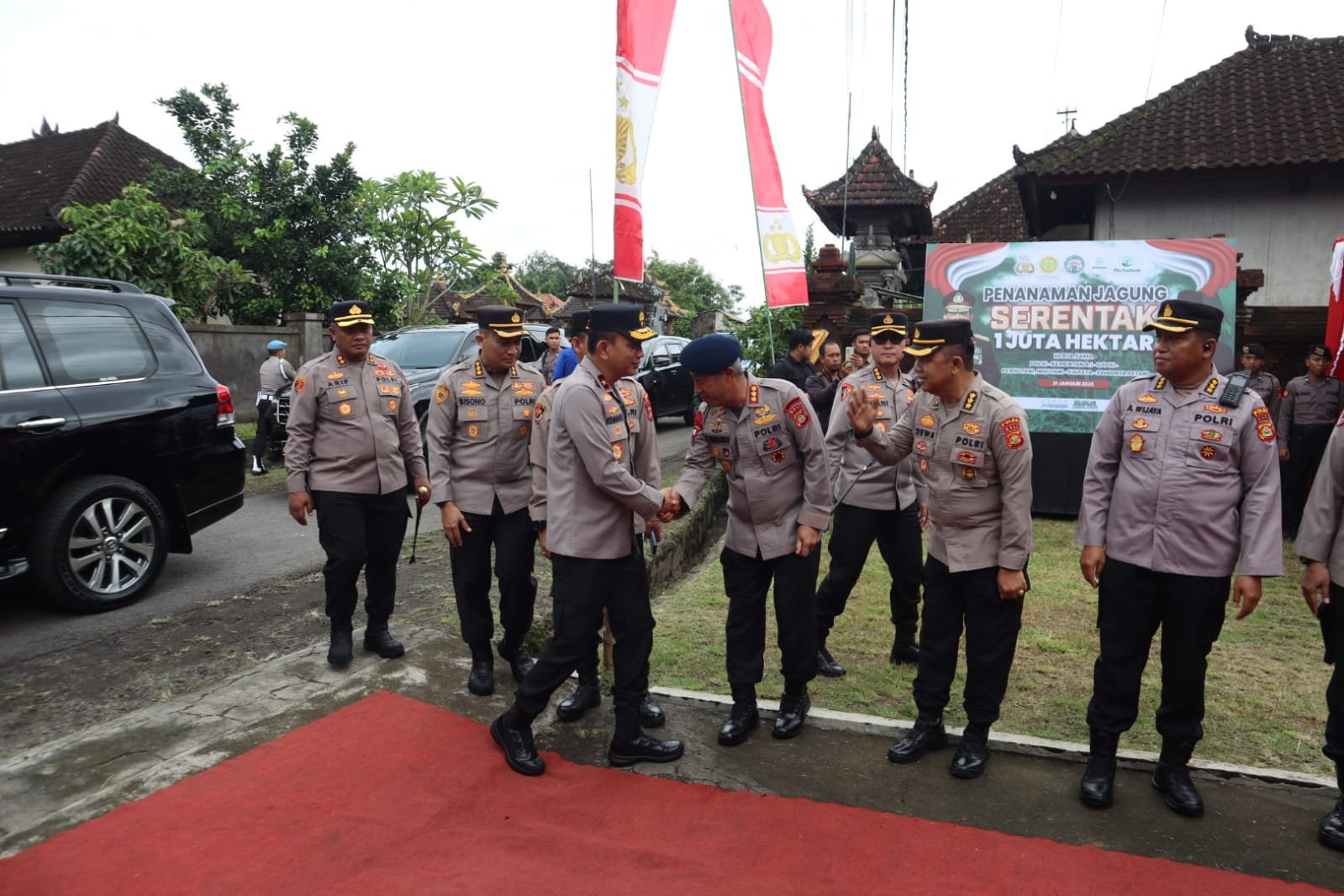 Mangupura, Lensapolri.com – Kepala Kepolisian Resor Badung AKBP M. Arif Batubara, SH. SIK. MH. M.Tr. Opsla mendampingi Kapolda Bali Irjen Pol. Daniel Adityajaya, S.H., S.I.K., M.Si. zoom Meeting Penanaman Jagung Serentak 1 Juta Hektar di Lahan Perkebunan atau Lahan Lainnya dalam Rangka Mendukung Swasembada Pangan Tahun 2025 dirangkaikan dengan Penanaman Jagung Serentak Satu Juta Hektar. bertempat di Banjar Srijati, Desa Sibanggede, Kecamatan Abiansemal, Kabupaten Badung, Selasa tanggal 21 Januari 2025 pukul 11.10 Wita. Yang dipimpin langsung oleh Kapolri Jenderal Polisi Drs. Listyo Sigit Prabowo, M.Si.