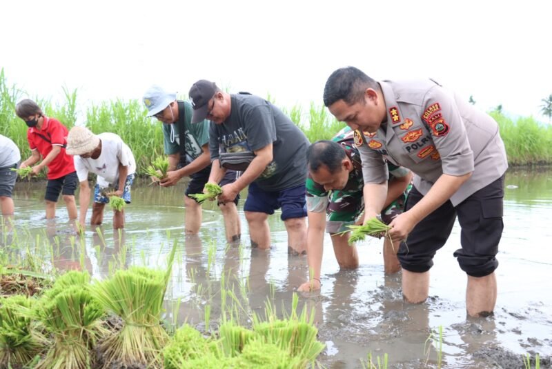 Gianyar , Lensapolri.com – Kapolres Gianyar AKBP Umar, S.I.K., M.H. ikut ambil bagian dalam menanam padi organik di Subak Padang Lantang, Desa Lebih, Kecamatan Gianyar, Kabupaten Gianyar sebagai upaya mendukung Ketahanan Pangan Nasional. Kamis (23/1).