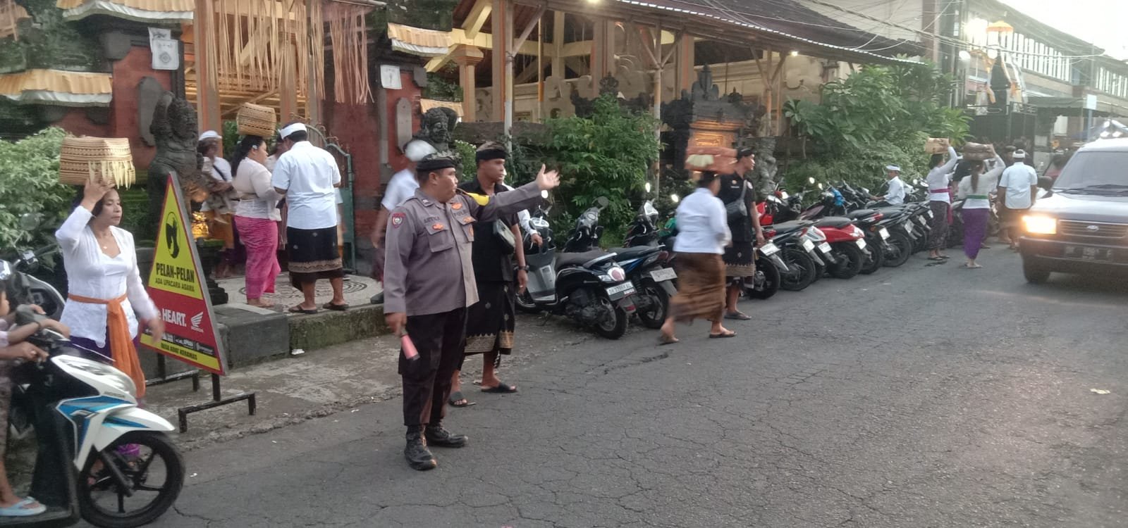 Dalam pengamanan ini, Bhabinkamtibmas bekerja sama dengan Pecalang untuk mengatur arus lalu lintas di sekitar Pura Melanting, yang menjadi lokasi pusat kegiatan upacara. Selain itu, para petugas juga membantu menyeberangkan pemedek (jamaah) yang hendak melakukan persembahyangan, untuk memastikan keselamatan mereka saat melintas di jalan raya yang cukup padat. Keberadaan petugas di lokasi menjadi bagian dari upaya menjaga ketertiban dan kelancaran kegiatan upacara.