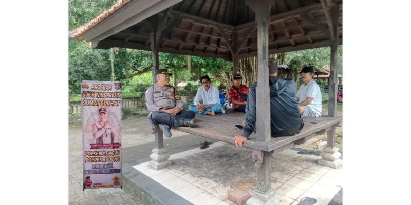 MENGWI, Lensapolri.com – Polsek Mengwi secara rutin menggelar kegiatan Jumat Curhat sebagai sarana bertukar informasi terkait gangguan kamtibmas dilingkungan masyarakat Kecamatan Mengwi, kali ini kegiatan Jumat Curhat digelar bersama masyarakat lingkungan Banjar Dharmayasa Desa Gulingan, Kecamatan Mengwi, Kabupaten Badung. Jumat (24/1/2025) pukul 09.00 wita