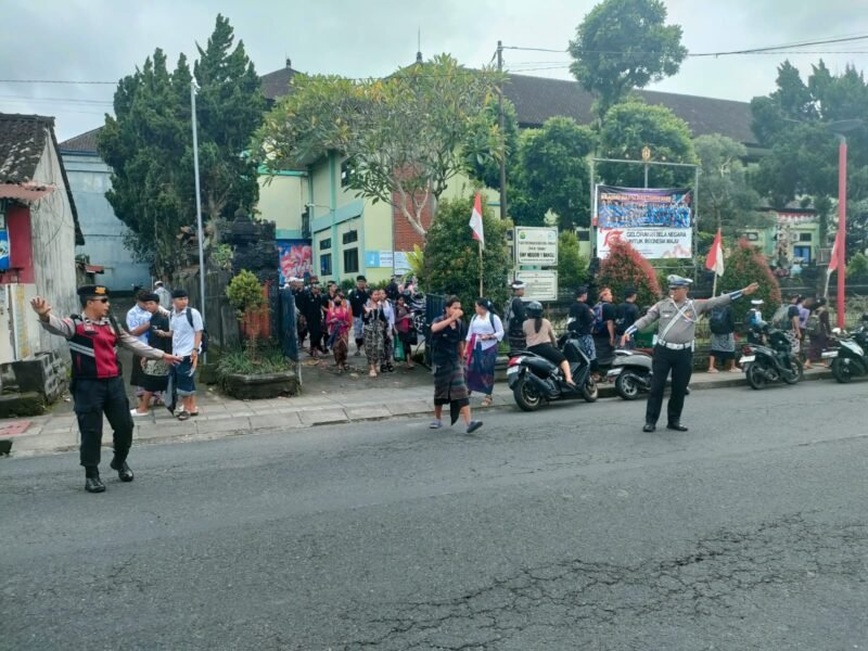 Jaga Situasi Tetap Kondusif, Personil Polsek Bangli Laksanakan Pengaturan Di Depan SMP N 1 Bangli