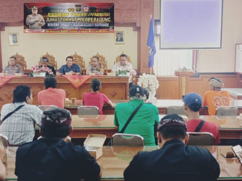 Mangupura, Lensapolri.com – Kapolres Badung, AKBP M. Arif Batubara, SH., SIK., MH., M.Tr.Opsla., melalui Kasat Intelkam Polres Badung AKP I Nyoman Anom Suardana, SH., menggelar program Beyond Trust Presisi melalui kegiatan Jumat Curhat yang berlangsung di Desa Abiansemal, Kecamatan Abiansemal, Kabupaten Badung. Kegiatan ini bertujuan untuk mendekatkan jajaran kepolisian dengan masyarakat sekaligus mendengarkan keluhan dan masukan terkait masalah kamtibmas (keamanan dan ketertiban masyarakat) yang ada di wilayah setempat. Jumat (24/1/25) pagi.