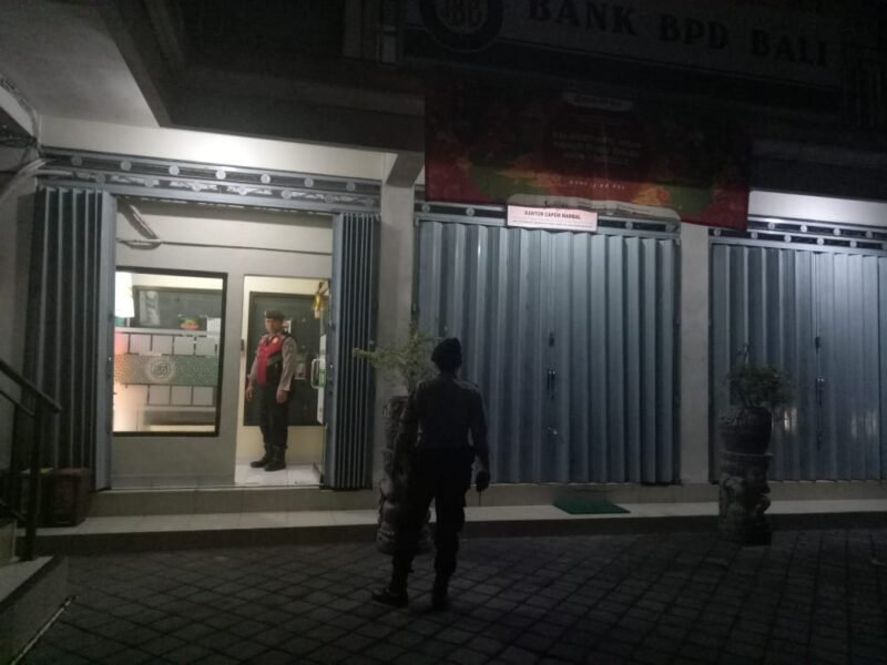 Unit Samapta Polsek Abiansemal dengan menggunakan Kendaraan roda empat kijang 920 yang dipimpin oleh Pawas IPTU I Nyoman Suagusdika melaksanakan kegiatan patroli dengan sasaran kantor BPD Bali unit Mambal yang beralamat di Desa Mambal, Kecamatan Abiansemal, Kabupaten Badung. Senin, (27/01) pukul 02.15 Wita.