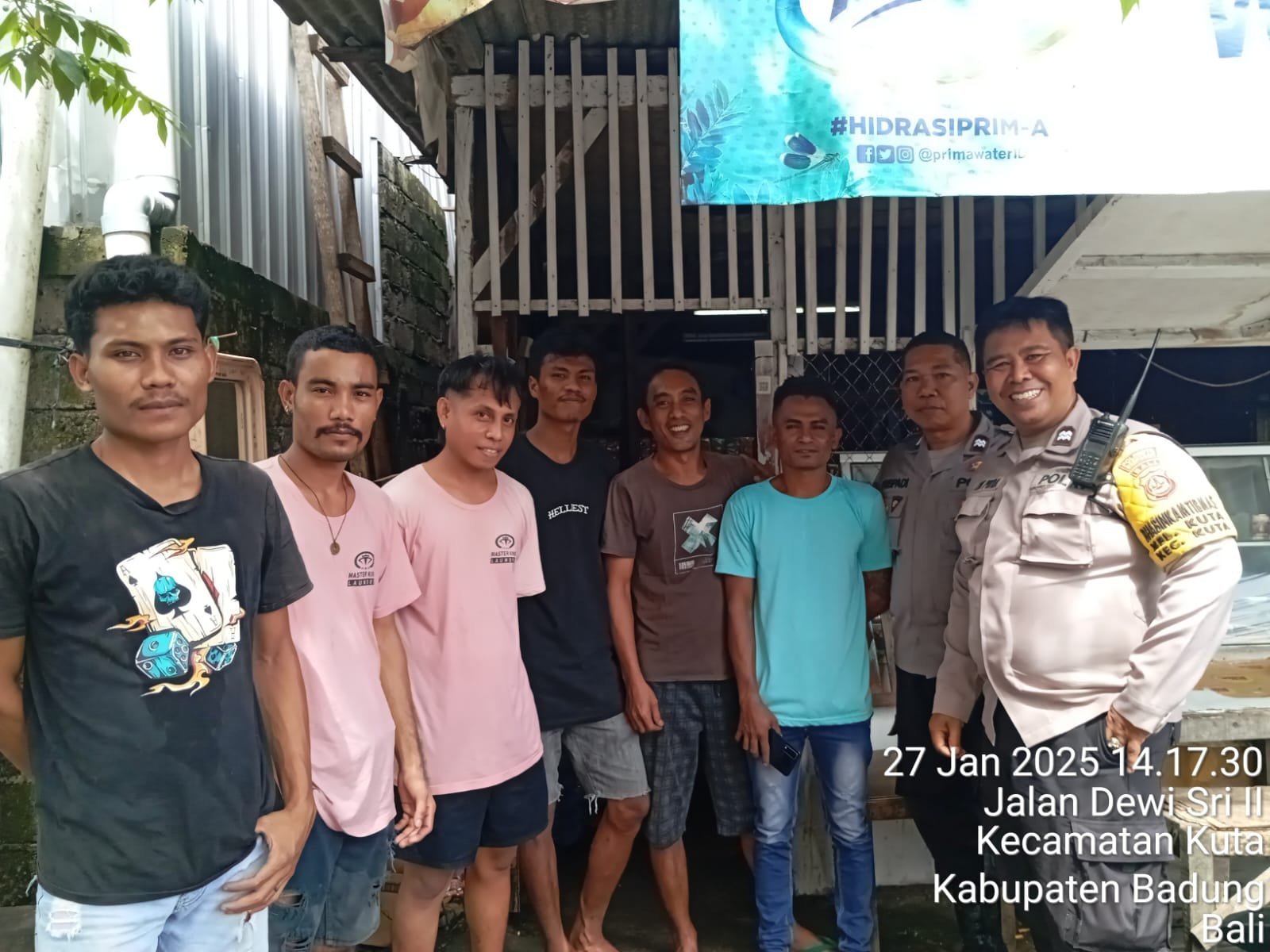 Lensapolri.com – Pada hari Senin, 27 Januari 2025, pukul 15.10 Wita, Bhabinkamtibmas Kuta, Aiptu Komang Puspadi bersama Aiptu Cokorda Alit Putra, S.H., melaksanakan sambang ke sebuah perusahaan yang mempekerjakan warga NTT, khususnya anak-anak dari Sumba, yang berlokasi di Jalan Dewi Sri II, Br. Abian Base, Desa Adat Kuta.