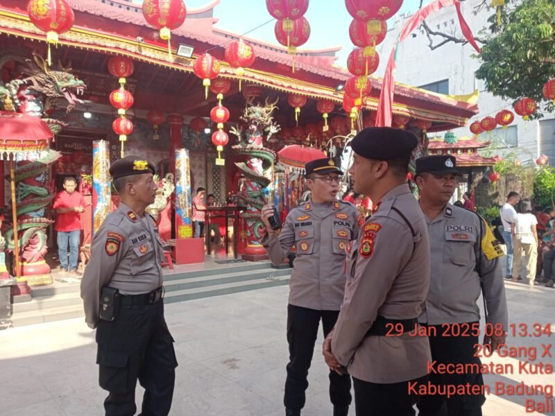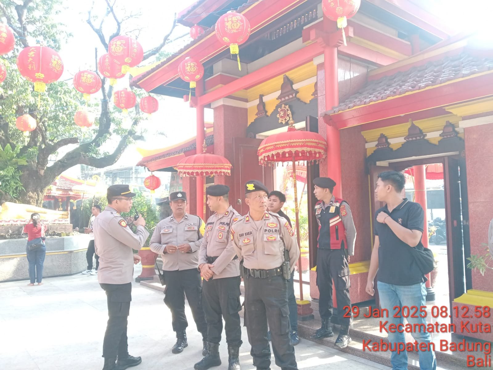 Kegiatan pengamanan ini dilakukan guna menjaga kelancaran dan keamanan selama prosesi persembahyangan yang berlangsung di Vihara Dharmayana Kuta, yang merupakan salah satu tempat ibadah penting bagi umat Buddha yang merayakan Hari Raya Imlek.