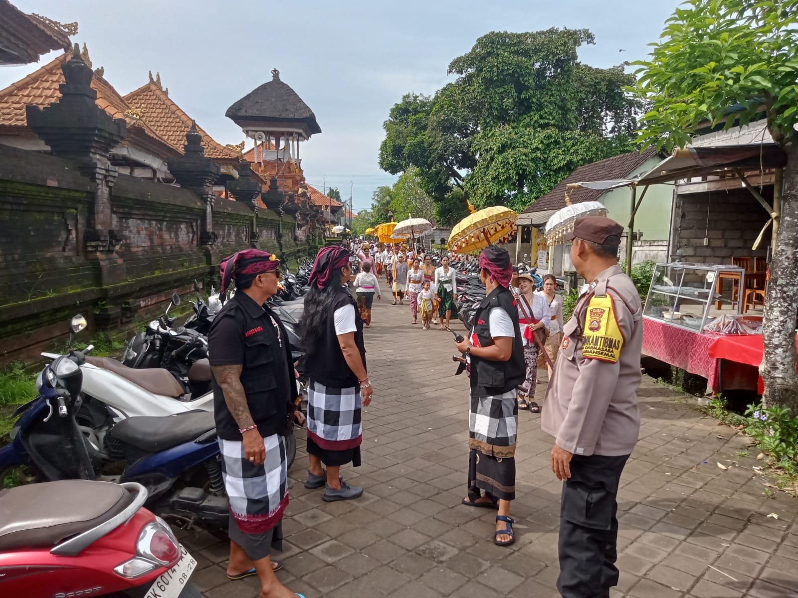 Dalam kesempatan tersebut personil Samapta Polsek Abiansemal bersinergi dan berkolaborasi dengan Pecalang setempat melaksanakan pengamanan dan pengaturan lalulintas serta memonitor kantong – kantong parkir sekaligus tidak lupa memberikan himbauan kepada warga untuk sama-sama menjaga keamanan dan ketertiban sehingga diharapkan kegiatan masyarakat tersebut dapat berjalan dengan aman, lancar dan kondusif.