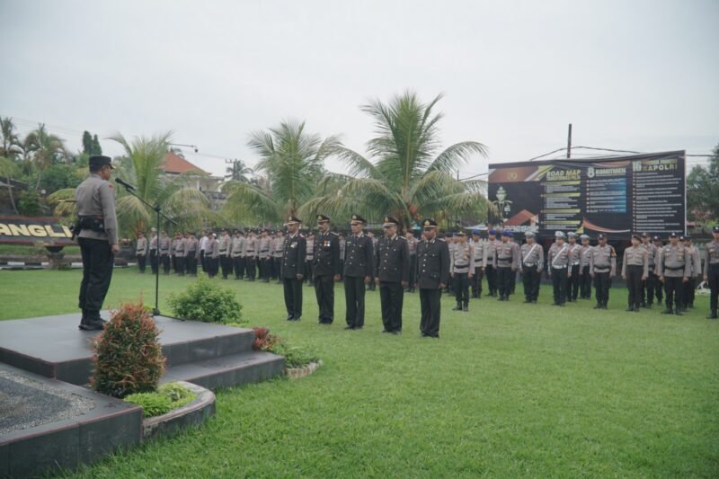 Acara ini dihadiri oleh Pejabat Utama Polres Bangli, Ketua Bhayangkari Cabang Bangli dan pengurus, personel Polres Bangli dan PNS dipimpin langsung oleh Kapolres Bangli, AKBP I Gede Putra, S.H., S.I.K., M.H., selaku Inspektur Upacara.