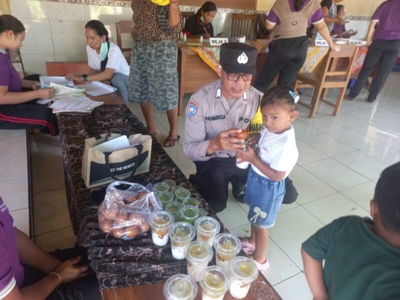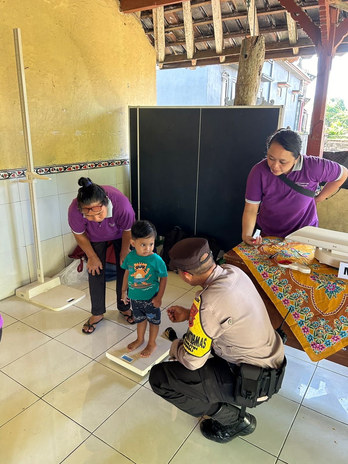 Bhabinkamtibmas Desa Bunutin, Kec Bangli Bripka I Nengah Padmayasa, melaksanakan sambang sambil memantau kegiatan Posyandu di Br. Dadia Puri, Desa Bunutin, Kec Bangli, Rabu pagi (5/2/2025).