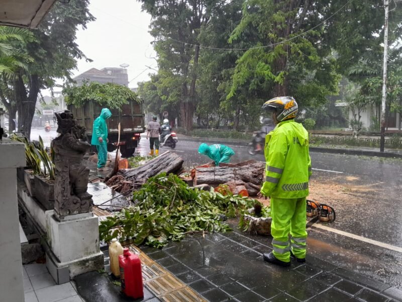 Personel Polsek Denpasar Utara Sigap Tangani Pohon Tumbang di Jl Veteran