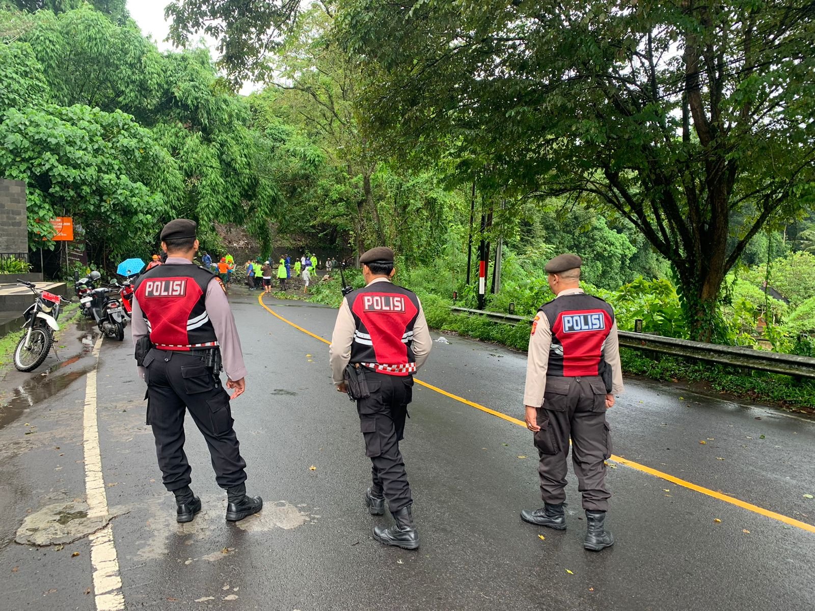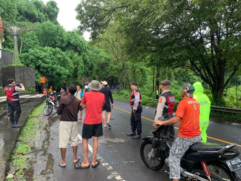 Personil Patroli Kota Presisi Samapta Polres Gianyar bergabung dengan jajaran lalu lintas melaksanakan atensi dan menghimbau kepada pengguna jalan agar tidak memasuki TKP tanah longsor dan mengalihkan arus lalulintas di simpang lapangan tulikup ke arah Bay Pas Ida bagus mantra, agar tidak terjadi kemacetan dan hal-hal yang tidak di inginkan, agar terciptanya situasi yang aman dan kondusif