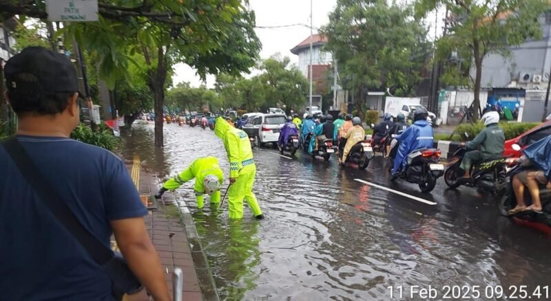 Selasa, Lensapolri.com – 12 Februari 2025 – Genangan air yang masih tinggi di sekitar bypass depan Hartono Motor mengganggu arus lalu lintas, menyebabkan kemacetan dan memperlambat pergerakan kendaraan. Personel kepolisian POLSEK KUTA yang berada di lokasi tengah bekerja keras untuk mengatasi masalah tersebut. Beberapa personel tampak memeriksa dan mencari lubang drainase yang tersumbat agar air dapat mengalir dengan lancar, mengurangi dampak genangan yang cukup mengganggu.