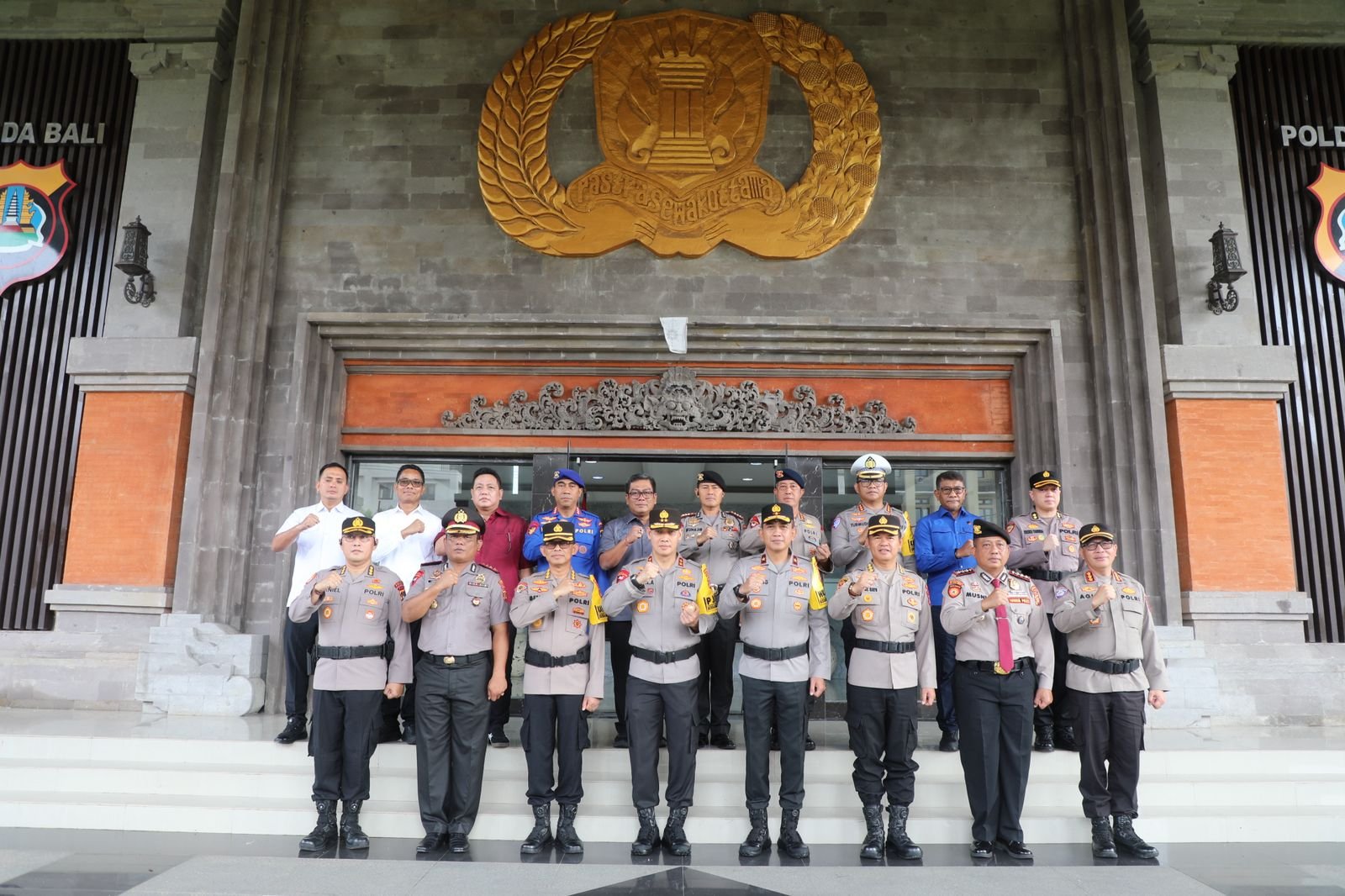Lensapolri,com – Kepala Kepolisian Daerah Bali, Irjen. Pol. Daniel Adityajaya, S.H., S.I.K., M.Si. memimpin upacara korps raport Kenaikan Pangkat Luar Biasa (KPLB) Pamen Polda Bali di Lobby depan Mapolda Bali, Kamis (13/2/2025).