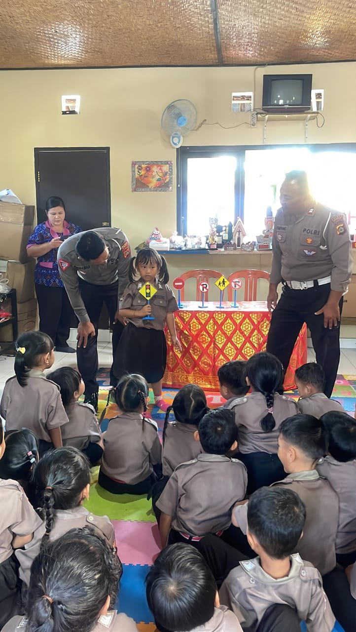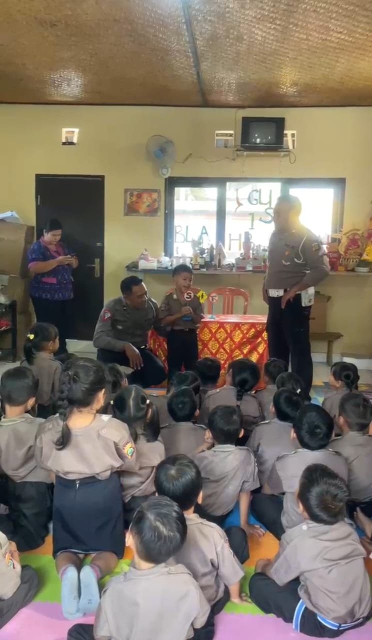 BLAHBATUH -GIANYAR, Lensapolri.com Polsek Blahbatuh Polres Gianyar melalui Unit Lalu Lintas kembali hadir untuk memberikan sosialisasi kepada siswa, kali ini bertempat di TK Lila Kumara, Desa Buruan pada Selasa, 18 Februari 2025. Kegiatan ini merupakan bagian dari program Polisi Sahabat Sekolah, yang bertujuan untuk mengedepankan interaksi humanis dengan anak-anak, sekaligus memberikan pemahaman sejak dini tentang pentingnya keselamatan dan tata tertib berlalu lintas.